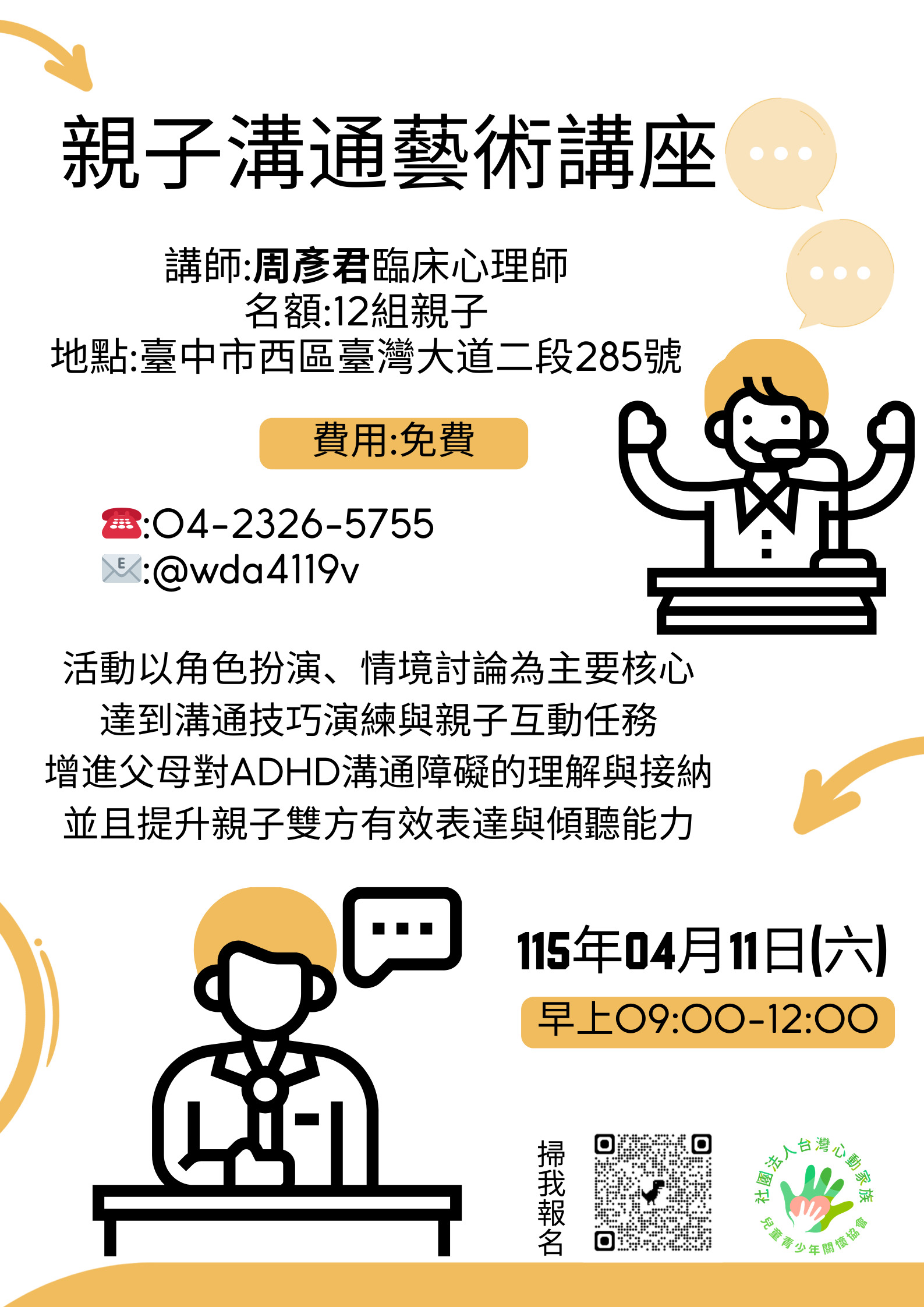 (三)04/19(日)【與醫師面對面】 主題:ADHD的情緒及人際關係